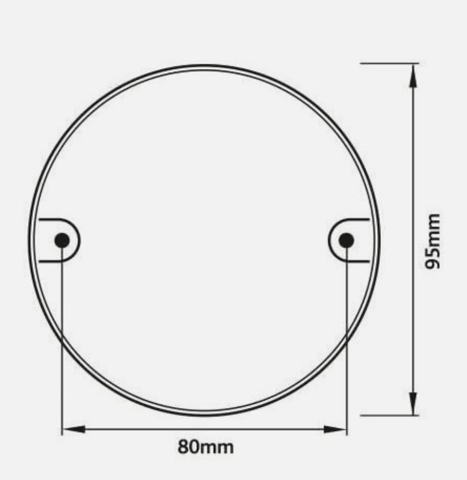 95mm round surface mounting base. Made from resilient ABS to make it long lasting.